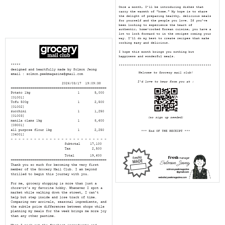 I’m so thrilled to finally share the official opening of the ‘Grocery Mail Club’ with you right here! It’s truly overwhelming to think that the joy of grocery shopping and cooking, something that used to be my own little private happiness, is now being crafted into something I love to share. I’m so excited to see the ideas I once only imagined taking shape in this small space, ready to be sent out across the world.